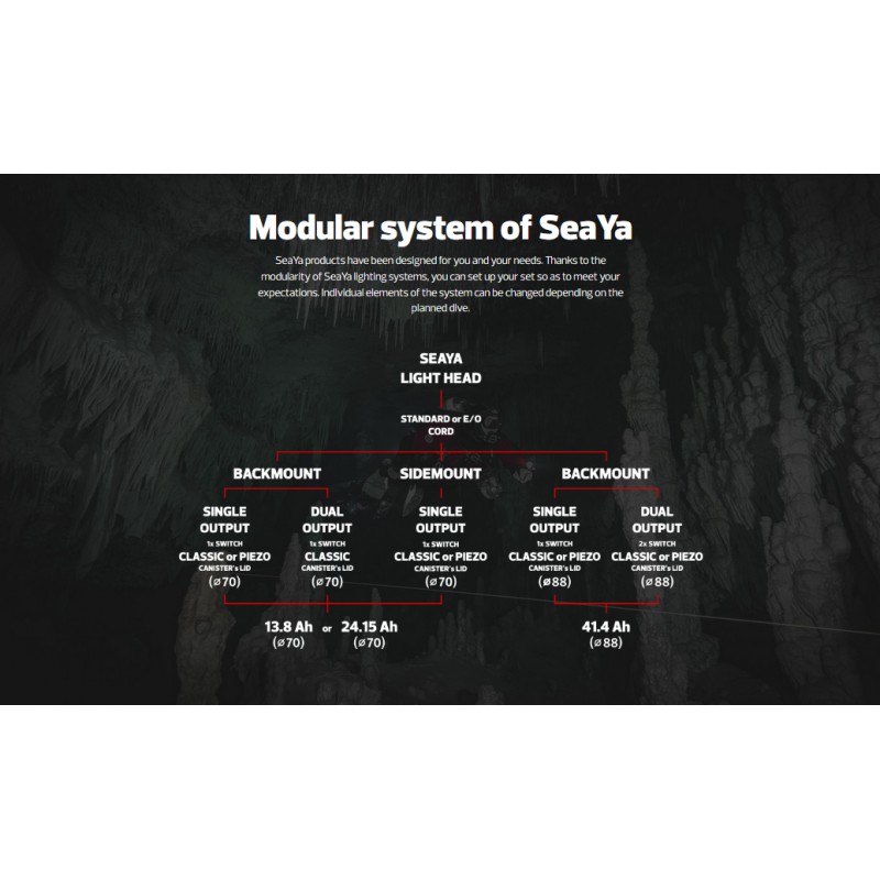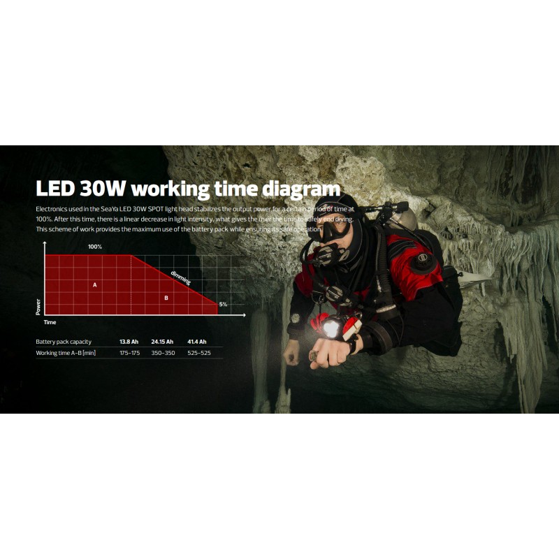 La linterna completa con batería SPOT está llamada a convertirse en el estándar de iluminación para buceo técnico. Modelo sencillo de un sólo modo de uso (ON/OF) personalizable con diferentes opciones, que proporciona 3600 lm a 6500º Kelvin. Una lámpara sencilla, potente y con muy buena penetración en agua salada.