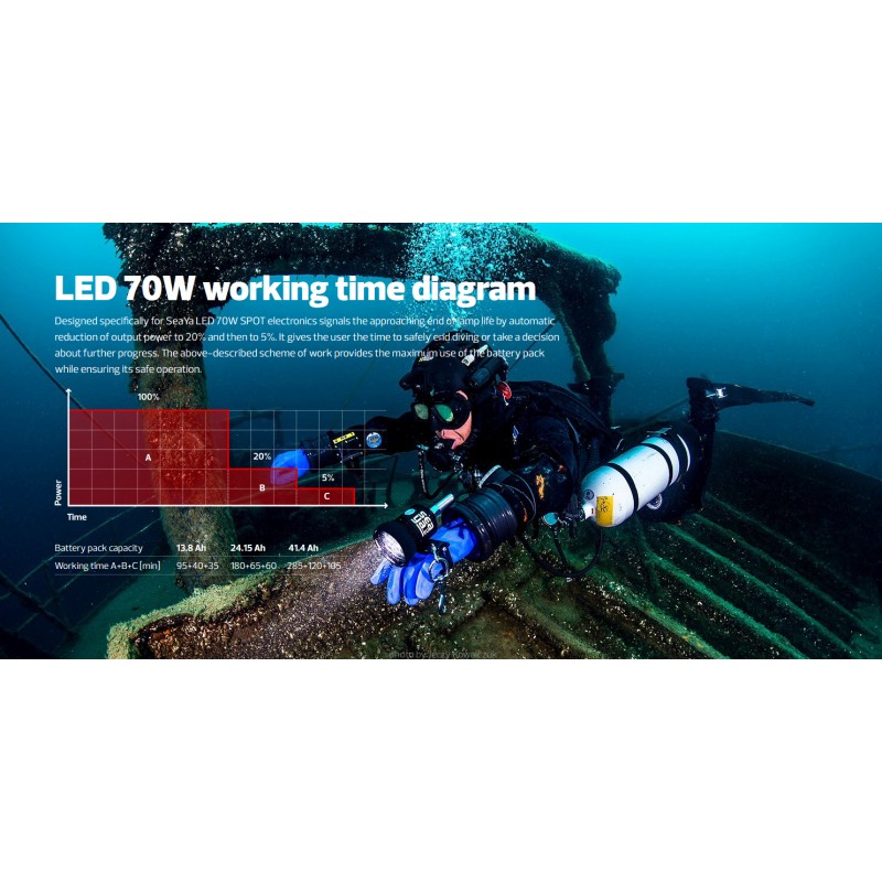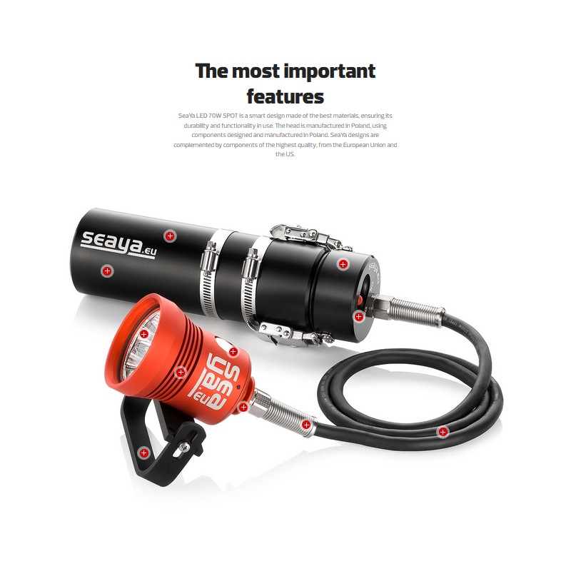 La linterna SPOT está llamada a convertirse en el estándar de iluminación para buceo técnico. Modelo sencillo de un sólo modo de uso (ON/OF) personalizable con diferentes opciones, que proporciona 8400 lm a 5700º Kelvin. Una lámpara sencilla, potente y con muy buena penetración en agua salada, doblemente apta como linterna y para vídeo.